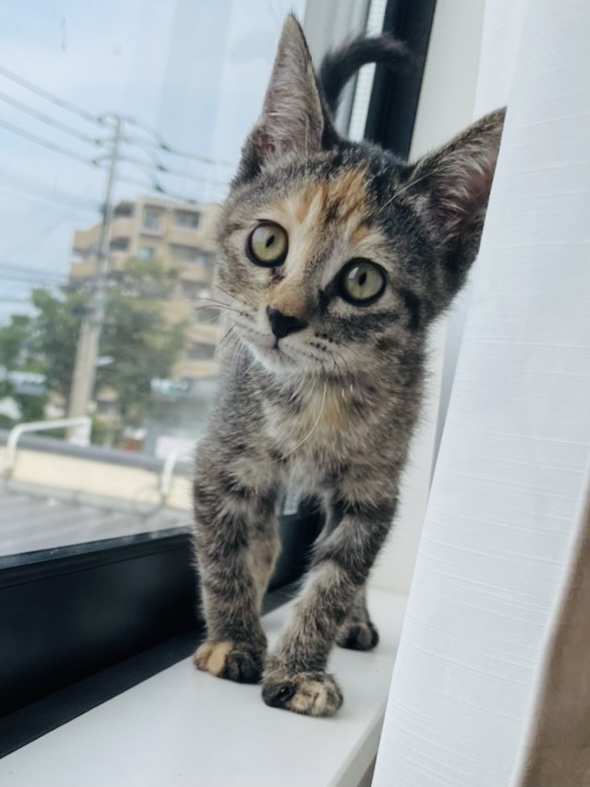 ②好奇心旺盛だけどビビり!お顔の茶色が△の形の女の子。